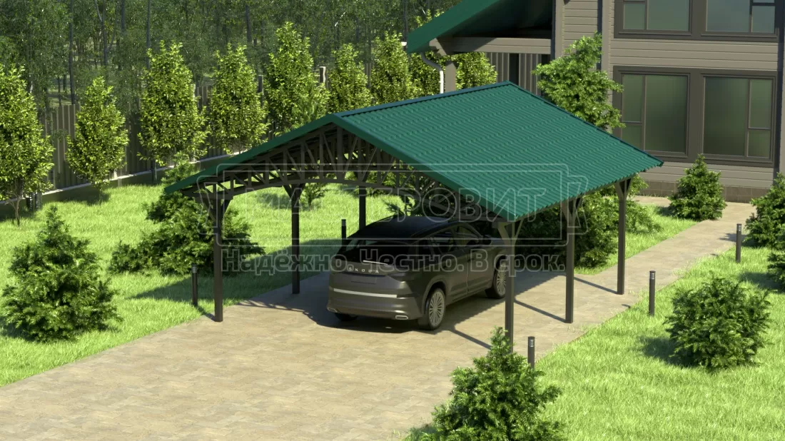 Двускатный навес №22 из металлочерепицы 5,5х6,3 м