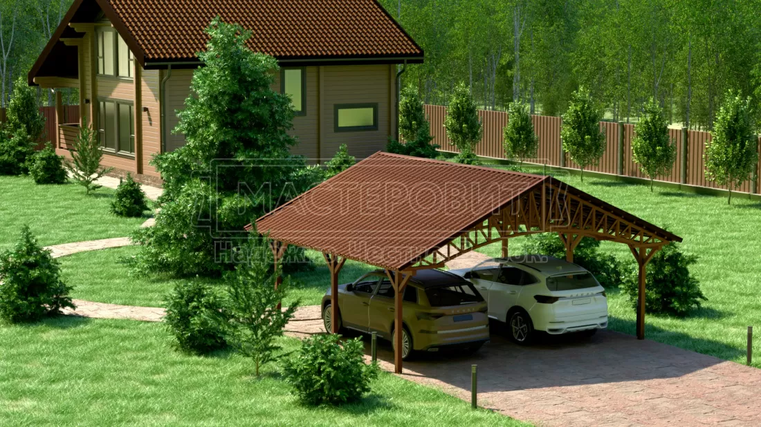 Двускатный навес №22 из металлочерепицы 6,5х6,3 м
