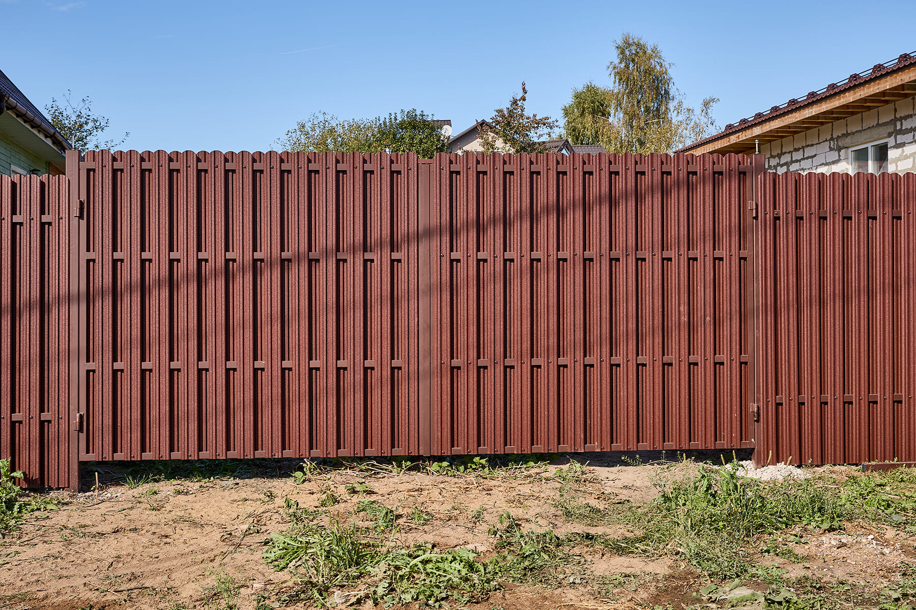 Забор из евроштакетника П-образный Мореный дуб шахматка