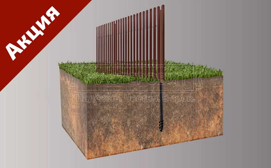Забор из евроштакетника Finfold П-образный на винтовых сваях "Шурупы"
