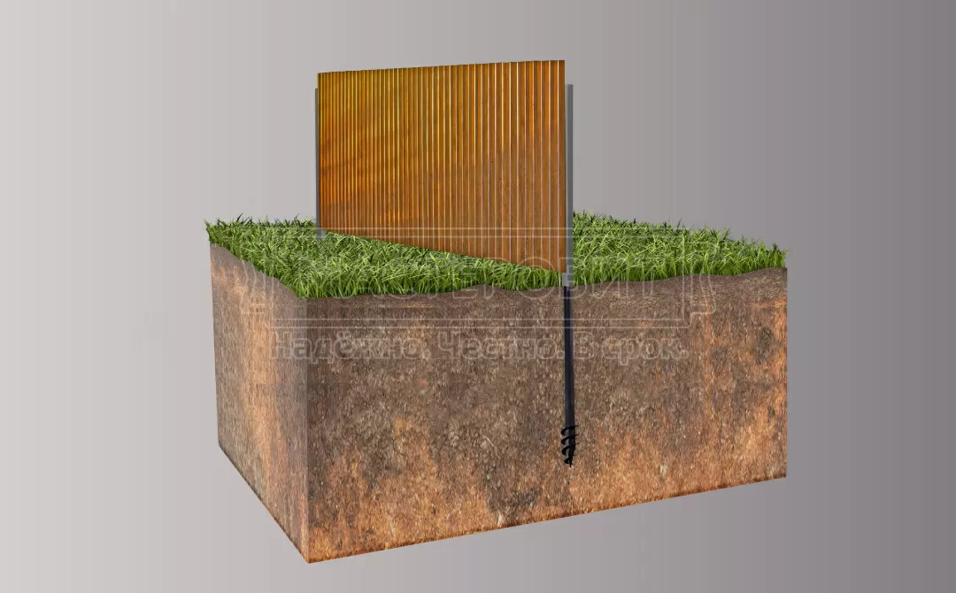 Забор из профнастила Мореный Дуб на винтовых сваях "Шурупы"